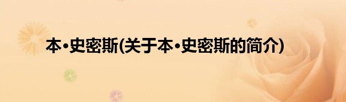 大家好,本·史密斯,关于本·史密斯的简介很多人还不知道,现在让我们一起来看看吧!