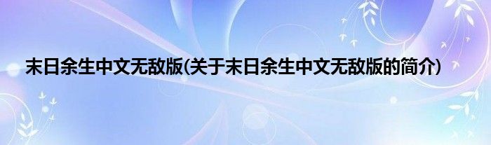 本文关于末日余生中文无敌版的简介就讲解完毕,希望对大家有所帮助。