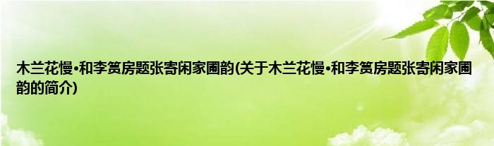 本文关于木兰花慢·和李筼房题张寄闲家圃韵的简介就讲解完毕,希望对大家有所帮助。