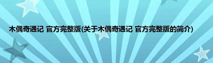 大家好,木偶奇遇记 官方完整版,关于木偶奇遇记 官方完整版的简介很多人还不知道,现在让我们一起来看看吧!
