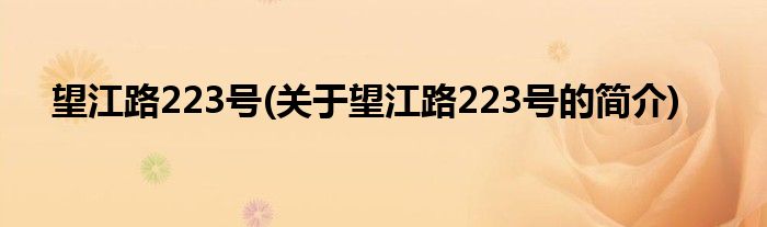 大家好,望江路223号,关于望江路223号的简介很多人还不知道,现在让我们一起来看看吧!