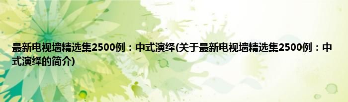 大家好,最新电视墙精选集2500例:中式演绎,关于最新电视墙精选集2500例:中式演绎的简介很多人还不知道,现在让我们一起来看看吧!