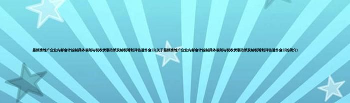 本文关于最新房地产企业内部会计控制具体准则与税收优惠政策及纳税筹划评估运作全书的简介就讲解完毕,希望对大家有所帮助。