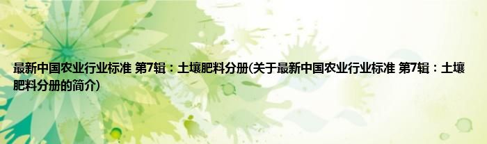 最新中国农业行业标准 第7辑:土壤肥料分册(关于最新中国农业行业标准 第7辑:土壤肥料分册的简介)