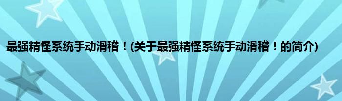 最强精怪系统手动滑稽!(关于最强精怪系统手动滑稽!的简介)