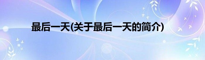 大家好,最后一天,关于最后一天的简介很多人还不知道,现在让我们一起来看看吧!