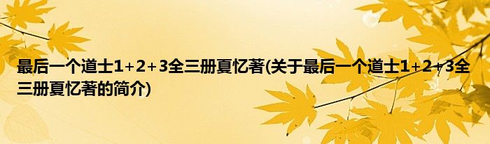 本文关于最后一个道士1+2+3全三册夏忆著的简介就讲解完毕,希望对大家有所帮助。