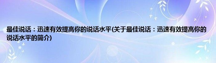 本文关于最佳说话:迅速有效提高你的说话水平的简介就讲解完毕,希望对大家有所帮助。
