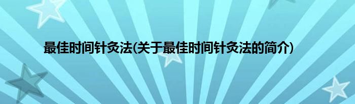 大家好,最佳时间针灸法,关于最佳时间针灸法的简介很多人还不知道,现在让我们一起来看看吧!