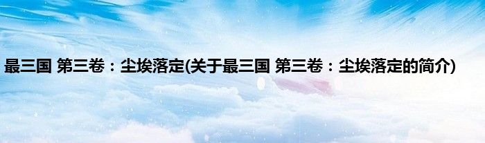大家好,最三国 第三卷:尘埃落定,关于最三国 第三卷:尘埃落定的简介很多人还不知道,现在让我们一起来看看吧!