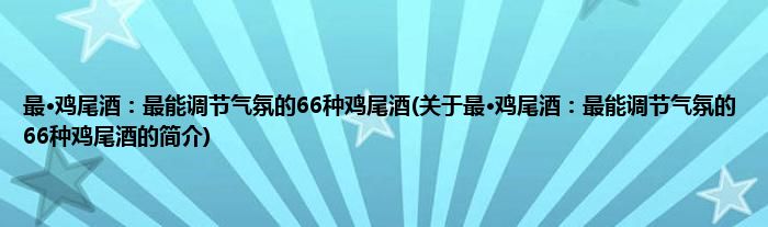 本文关于最·鸡尾酒:最能调节气氛的66种鸡尾酒的简介就讲解完毕,希望对大家有所帮助。