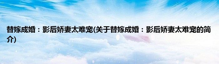 本文关于替嫁成婚:影后娇妻太难宠的简介就讲解完毕,希望对大家有所帮助。