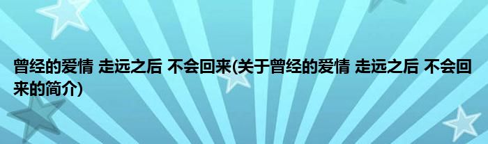 本文关于曾经的爱情,走远之后,不会回来的简介就讲解完毕,希望对大家有所帮助。