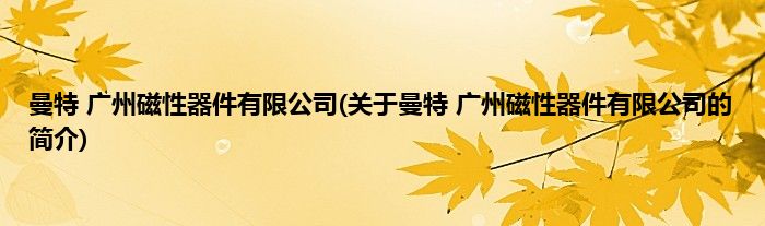 本文关于曼特 广州磁性器件有限公司的简介就讲解完毕,希望对大家有所帮助。