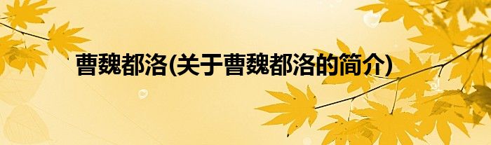 大家好,曹魏都洛,关于曹魏都洛的简介很多人还不知道,现在让我们一起来看看吧!