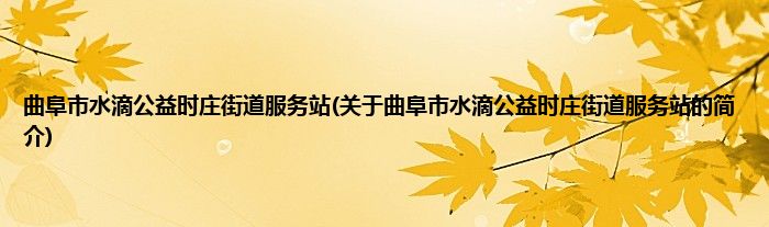 大家好,曲阜市水滴公益时庄街道服务站,关于曲阜市水滴公益时庄街道服务站的简介很多人还不知道,现在让我们一起来看看吧!