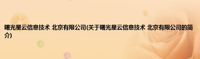 大家好,曙光星云信息技术 北京有限公司,关于曙光星云信息技术 北京有限公司的简介很多人还不知道,现在让我们一起来看看吧!