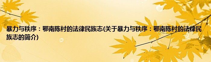 本文关于暴力与秩序:鄂南陈村的法律民族志的简介就讲解完毕,希望对大家有所帮助。