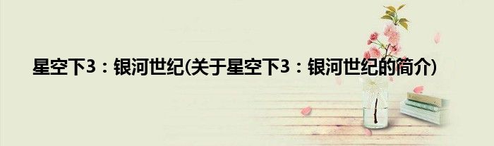 大家好,星空下3:银河世纪,关于星空下3:银河世纪的简介很多人还不知道,现在让我们一起来看看吧!