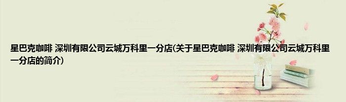 本文关于星巴克咖啡 深圳有限公司云城万科里一分店的简介就讲解完毕,希望对大家有所帮助。