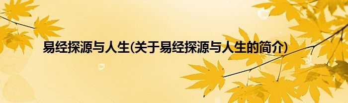 本文关于易经探源与人生的简介就讲解完毕,希望对大家有所帮助。