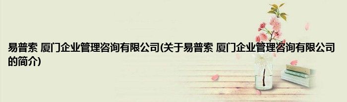本文关于易普索 厦门企业管理咨询有限公司的简介就讲解完毕,希望对大家有所帮助。