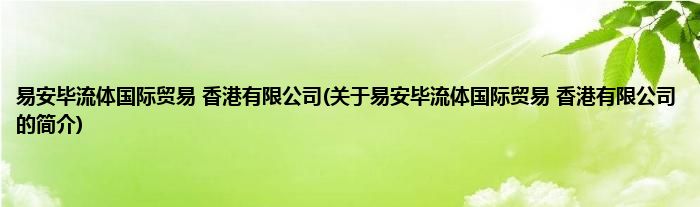 本文关于易安毕流体国际贸易 香港有限公司的简介就讲解完毕,希望对大家有所帮助。