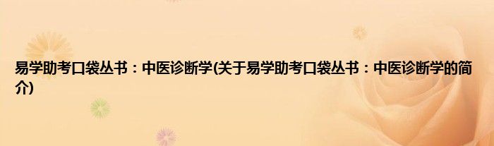 本文关于易学助考口袋丛书:中医诊断学的简介就讲解完毕,希望对大家有所帮助。