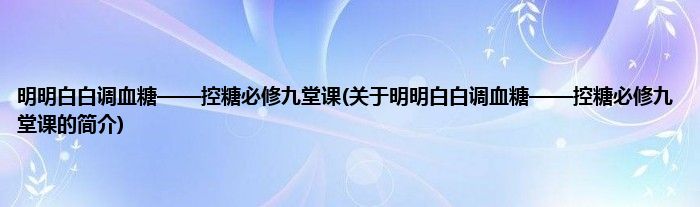 本文关于明明白白调血糖——控糖必修九堂课的简介就讲解完毕,希望对大家有所帮助。