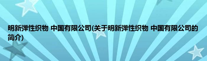大家好,明新弹性织物 中国有限公司,关于明新弹性织物 中国有限公司的简介很多人还不知道,现在让我们一起来看看吧!