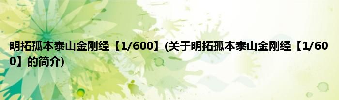 本文关于明拓孤本泰山金刚经【1/600】的简介就讲解完毕,希望对大家有所帮助。