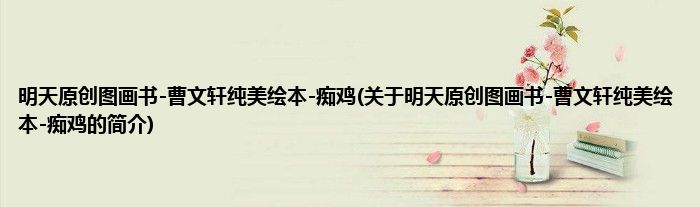 本文关于明天原创图画书-曹文轩纯美绘本-痴鸡的简介就讲解完毕,希望对大家有所帮助。