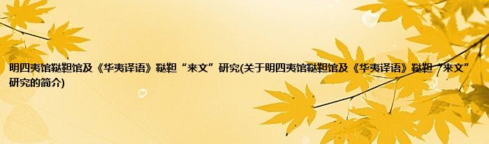 本文关于明四夷馆鞑靼馆及《华夷译语》鞑靼“来文”研究的简介就讲解完毕,希望对大家有所帮助。