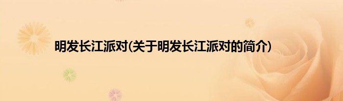 大家好,明发长江派对,关于明发长江派对的简介很多人还不知道,现在让我们一起来看看吧!