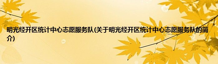 1、 明光经开区统计中心志愿服务队是由安徽明光经济开发区管理委员会志愿者服务队领导下的志愿团体。