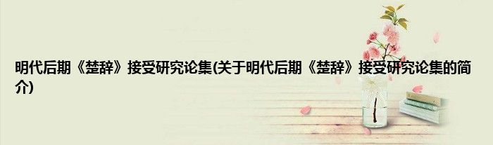 大家好,明代后期《楚辞》接受研究论集,关于明代后期《楚辞》接受研究论集的简介很多人还不知道,现在让我们一起来看看吧!