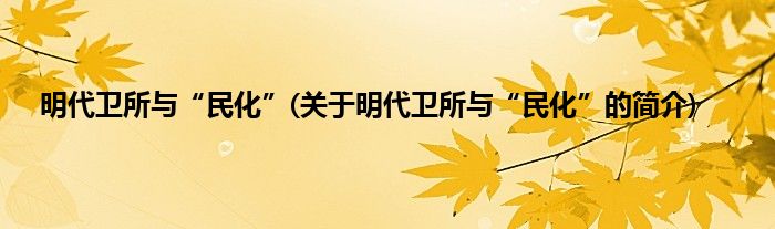 本文关于明代卫所与“民化”的简介就讲解完毕,希望对大家有所帮助。