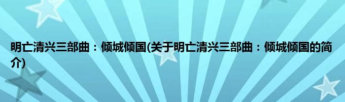 本文关于明亡清兴三部曲:倾城倾国的简介就讲解完毕,希望对大家有所帮助。