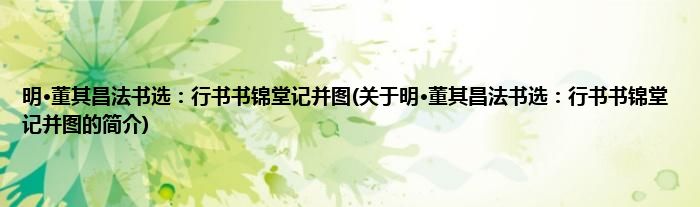 1、 《明·董其昌法书选:行书书锦堂记并图》是历代法书真迹萃编系列之一。