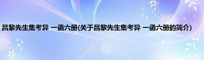 本文关于昌黎先生集考异 一函六册的简介就讲解完毕,希望对大家有所帮助。
