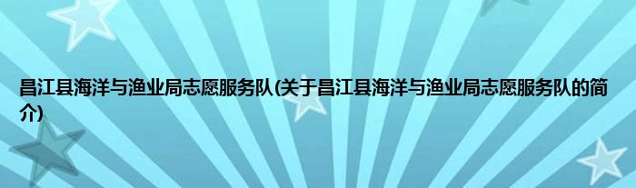 本文关于昌江县海洋与渔业局志愿服务队的简介就讲解完毕,希望对大家有所帮助。
