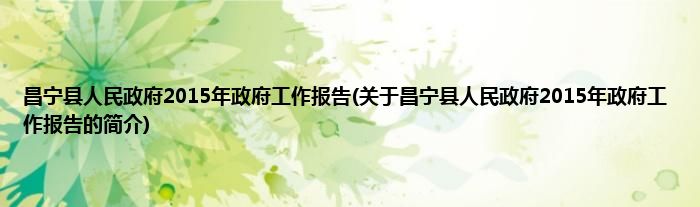 1、 《昌宁县人民政府2015年政府工作报告》是昌宁县人民政府的政府工作报告。