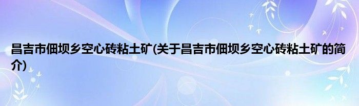 本文关于昌吉市佃坝乡空心砖粘土矿的简介就讲解完毕,希望对大家有所帮助。