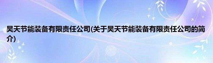 昊天节能装备有限责任公司(关于昊天节能装备有限责任公司的简介)