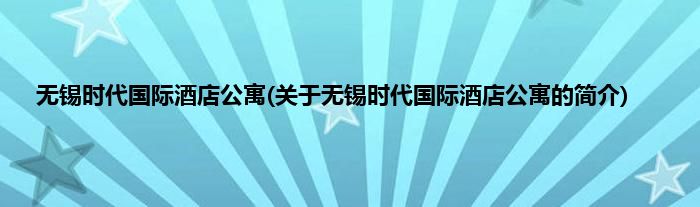 大家好,无锡时代国际酒店公寓,关于无锡时代国际酒店公寓的简介很多人还不知道,现在让我们一起来看看吧!