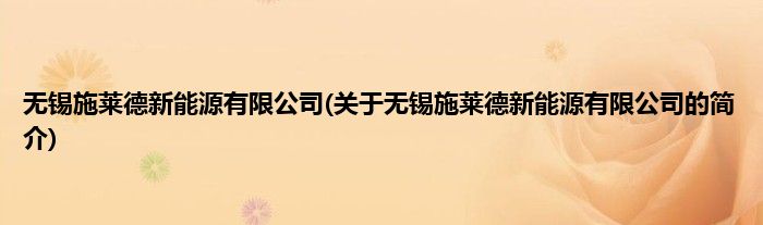 本文关于无锡施莱德新能源有限公司的简介就讲解完毕,希望对大家有所帮助。