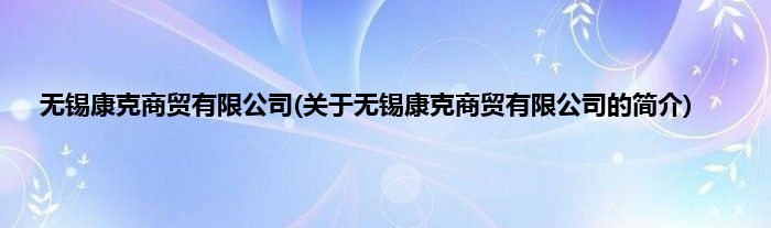 本文关于无锡康克商贸有限公司的简介就讲解完毕,希望对大家有所帮助。
