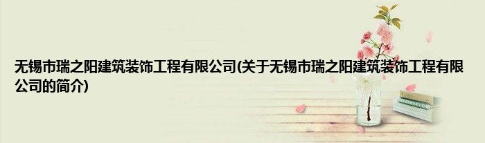 大家好,无锡市瑞之阳建筑装饰工程有限公司,关于无锡市瑞之阳建筑装饰工程有限公司的简介很多人还不知道,现在让我们一起来看看吧!