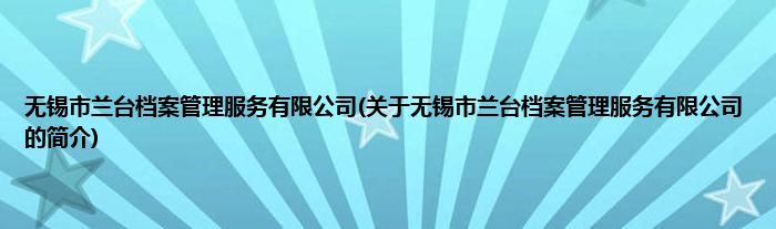 无锡市兰台档案管理服务有限公司(关于无锡市兰台档案管理服务有限公司的简介)