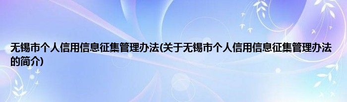 大家好,无锡市个人信用信息征集管理办法,关于无锡市个人信用信息征集管理办法的简介很多人还不知道,现在让我们一起来看看吧!